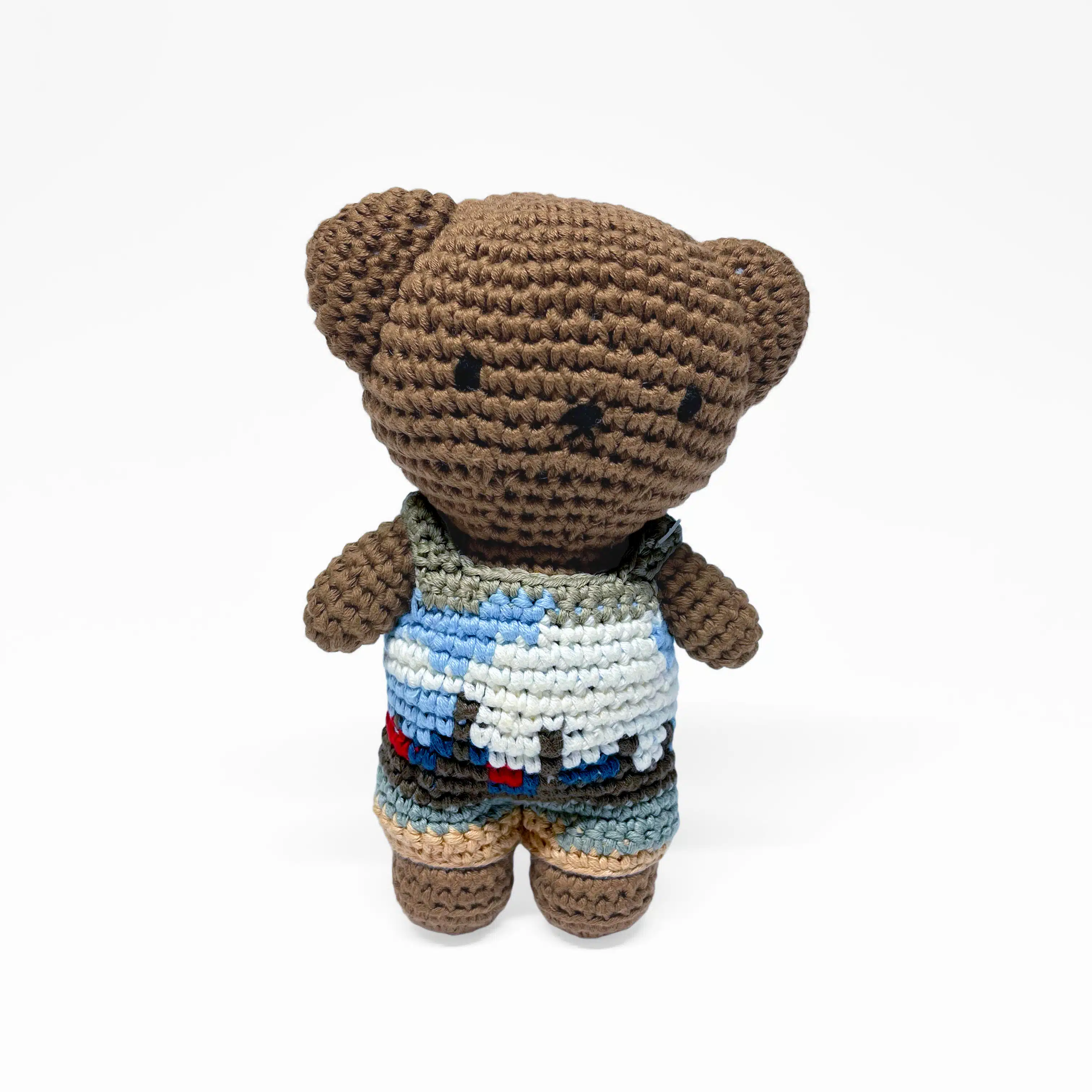 Deze gehaakte Boris draagt een outfit met details uit het meesterwerk Gezicht op Delft van Johannes Vermeer. Een unieke combinatie van kunst en karakter, die zorgt voor een bijzonder en origineel verzamelstuk of cadeau. Kunst om te knuffelen