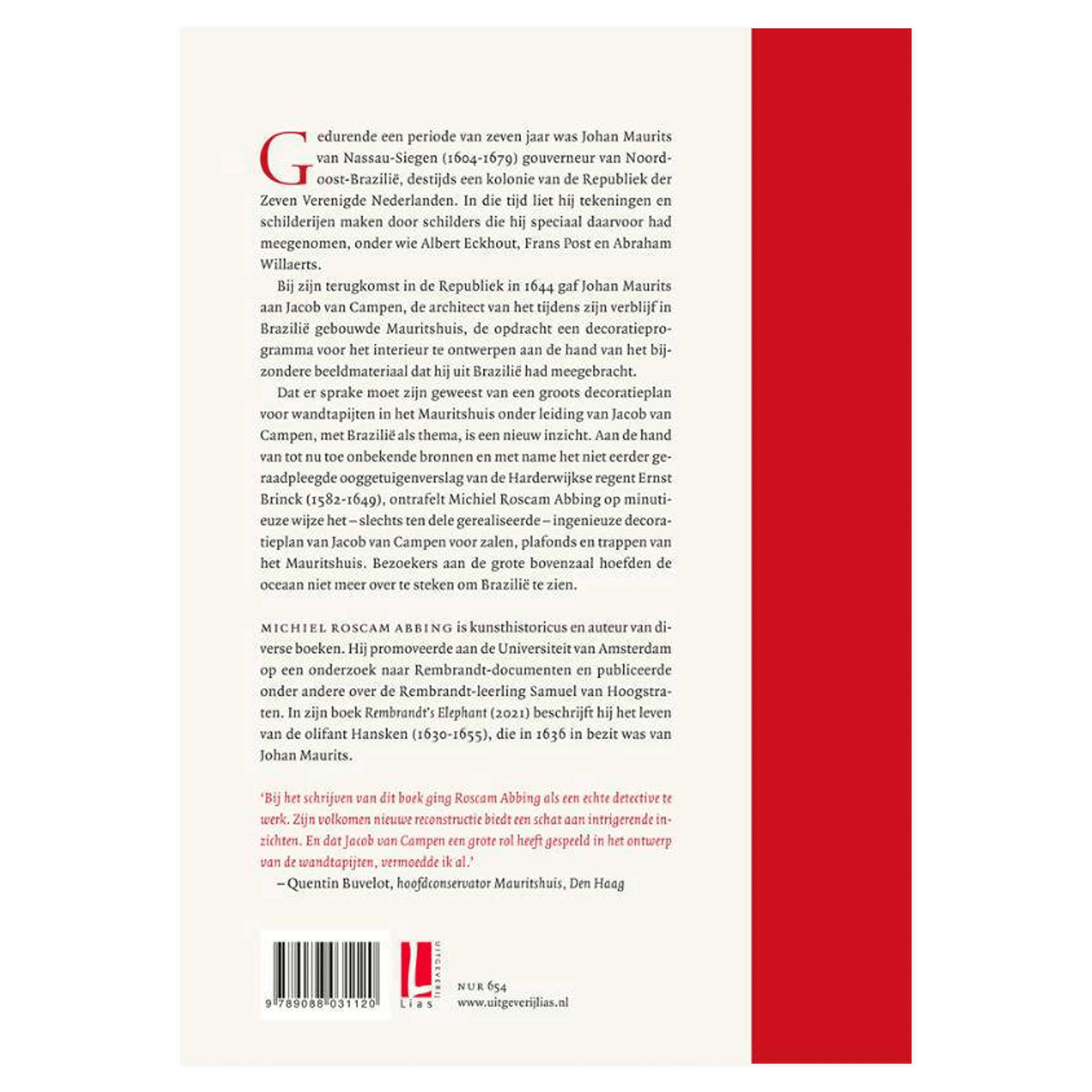 Gedurende een periode van zeven jaar was Johan Maurits van Nassau-Siegen (1604-1679) gouverneur van Noord-oost-Brazilië, destijds een kolonie van de Republiek der Zeven Verenigde Nederlanden. In die tijd liet hij tekeningen en schilderijen maken door schilders die hij speciaal daarvoor had meegenomen, onder wie Albert Eckhout, Frans Post en Abraham Willaerts. Bij zijn terugkomst in de Republiek in 1644 gaf Johan Maurits aan Jacob van Campen, de architect van het tijdens zijn verblijf in Brazilië gebouwde Mauritshuis, de opdracht een decoratieprogramma voor het interieur te ontwerpen aan de hand van het bijzondere beeldmateriaal dat hij uit Brazilië had meegebracht. Dat er sprake moet zijn geweest van een groots decoratieplan voor wandtapijten in het Mauritshuis onder leiding van Jacob van Campen, met Brazilië als thema, is een nieuw inzicht. Aan de hand van tot nu toe onbekende bronnen en met name het niet eerder geraadpleegde ooggetuigenverslag van de Harderwijkse regent Ernst Brinck (1582-1649), ontrafelt Michiel Roscam Abbing op minutieuze wijze het – slechts ten dele gerealiseerde – ingenieuze decoratieplan van Jacob van Campen voor zalen, plafonds en trappen van het Mauritshuis. Bezoekers aan de grote bovenzaal hoefden de oceaan niet meer over te steken om Brazilië te zien.