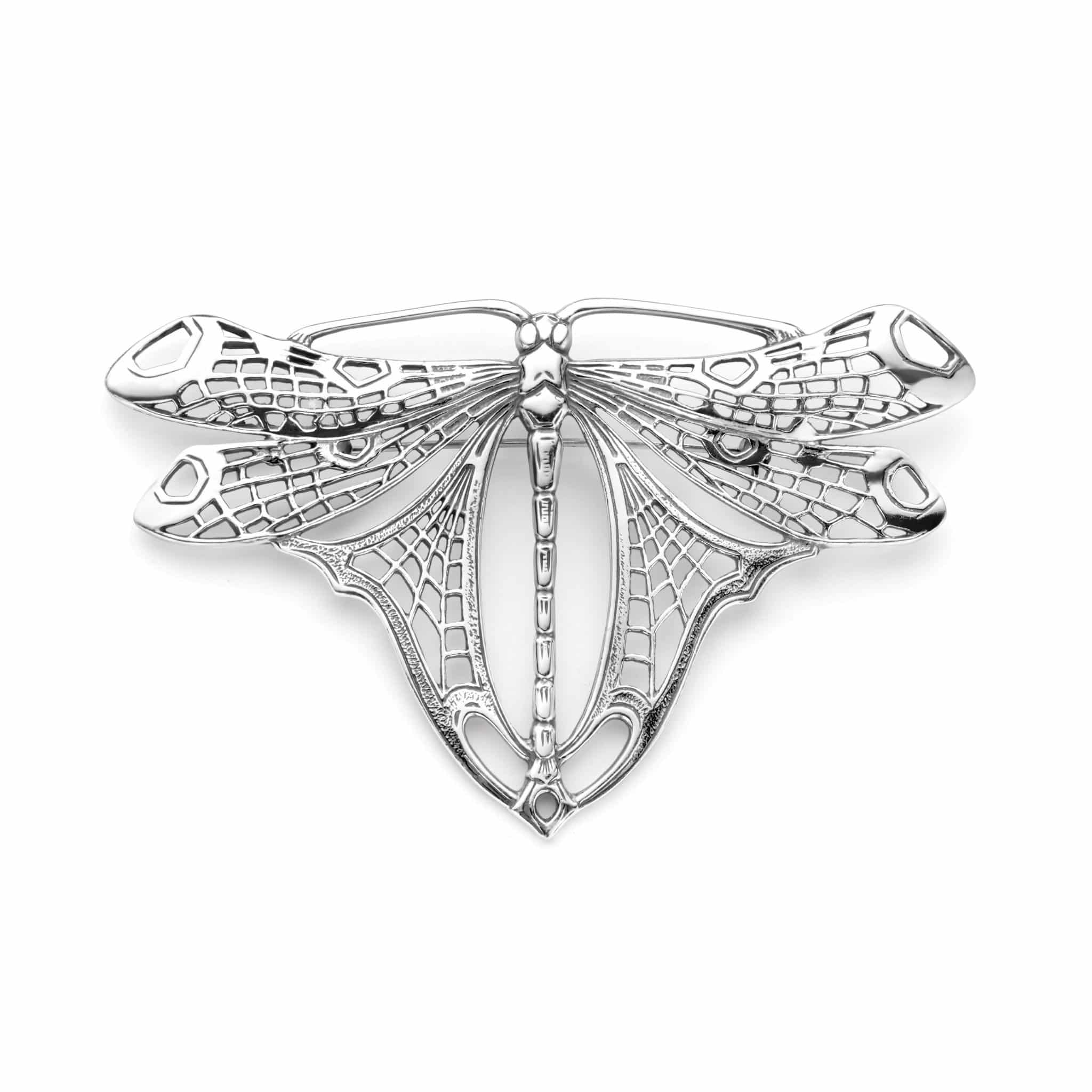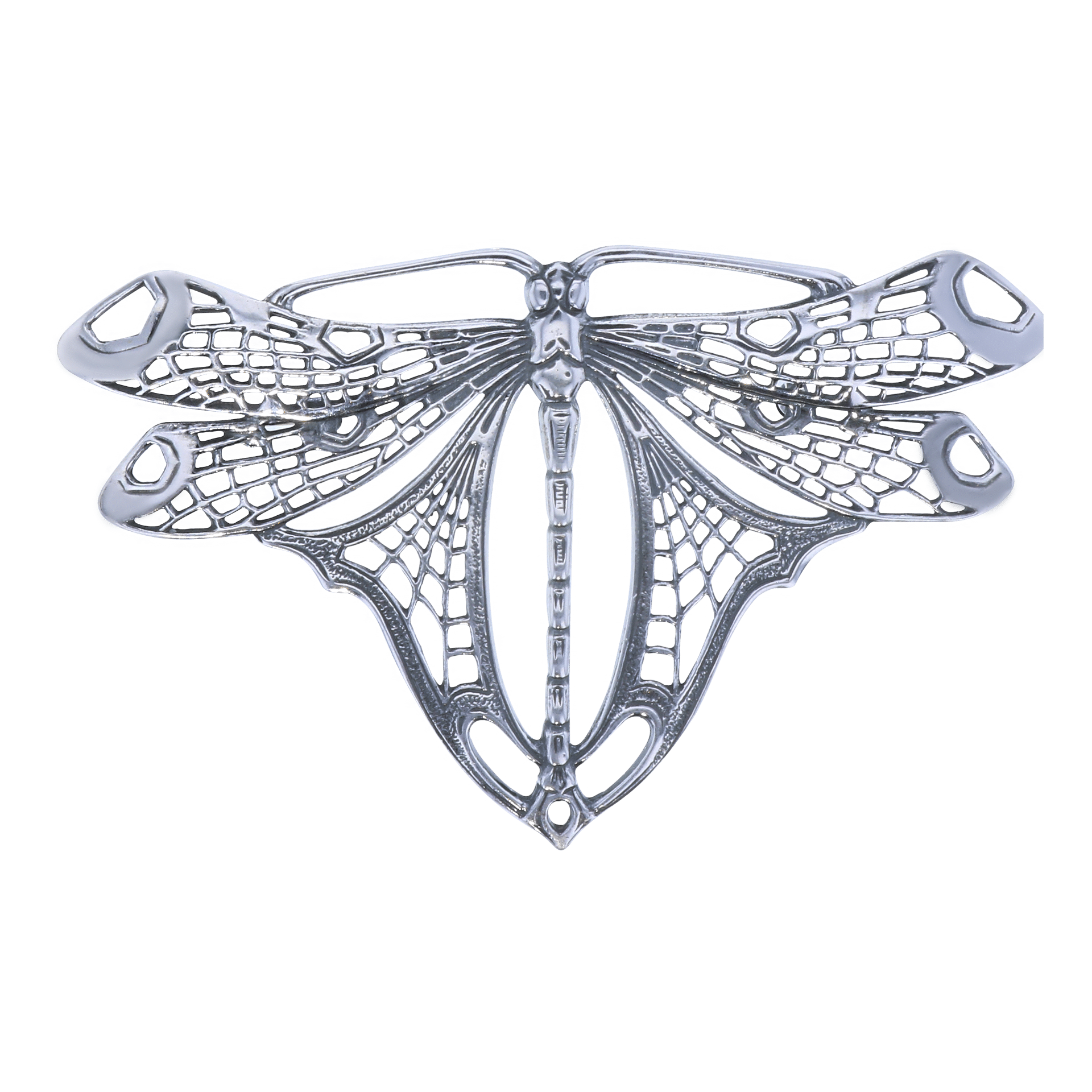 Broche libelle. Handgemaakt, sterling zilveren broche, vervaardigd in Nederland naar een ontwerp van René Lalique (1860-19450)