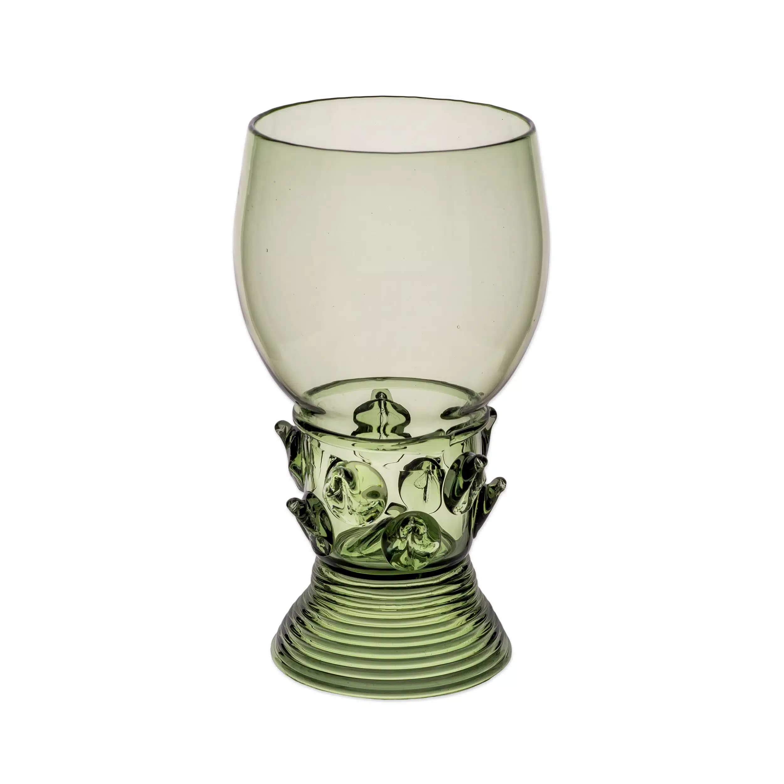Roemers met doorn noppen, zijn het meest gebruikte wijnglas van de 17de eeuw. Het mondgeblazen glas werd zorgvuldig gemaakt met als resultaat grote schoonheid. Deze glazen werden niet voor niets veel afgebeeld op stillevens. Dit glas heeft een eivormige kelk en het origineel stamt uit 1650-1700.