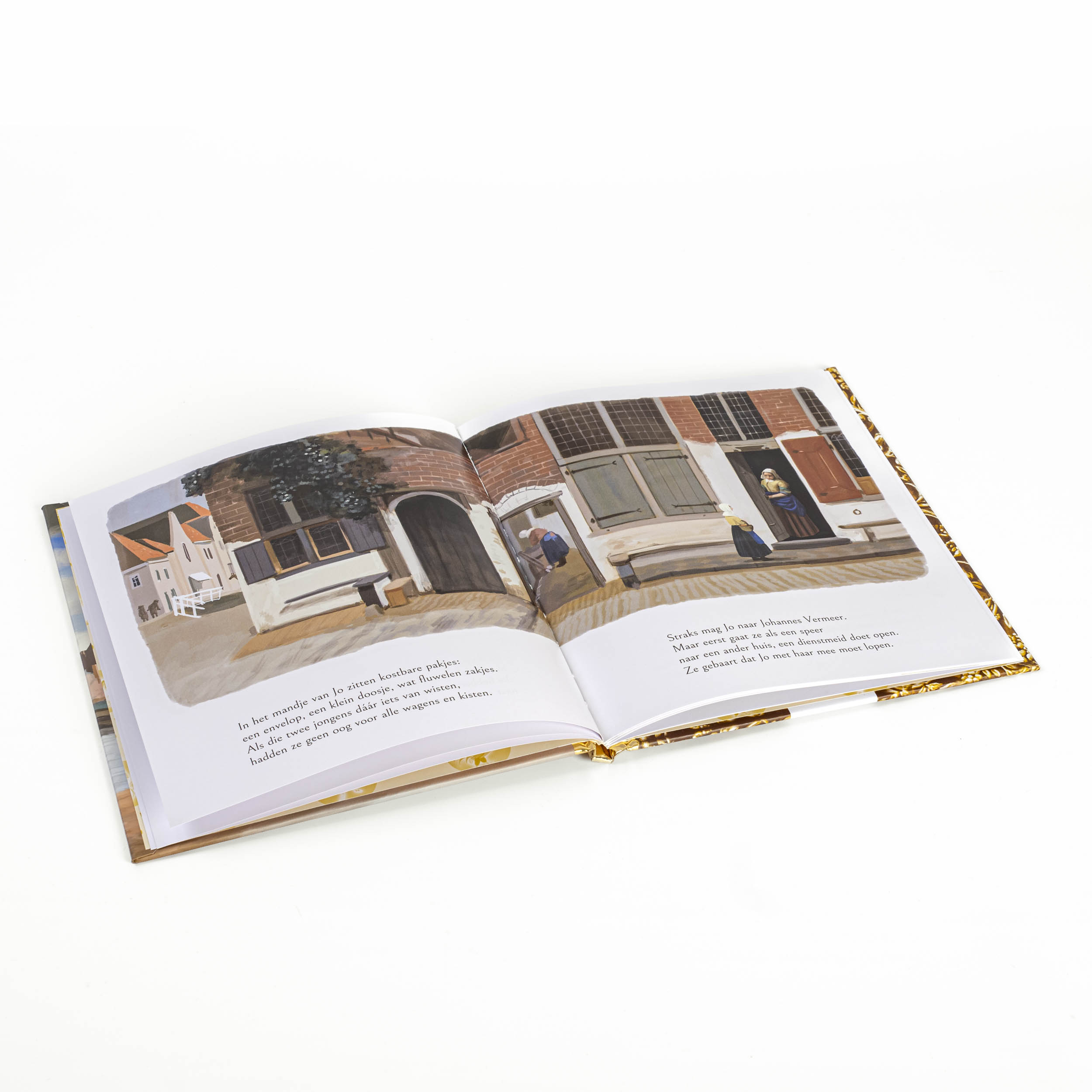 Een meisje loopt gehaast door Delft. Ze heeft verschillende pakketjes bij zich die ze moet bezorgen. Brieven, een gitaarsnaar… en een stukje blauwe steen. Lapis lazuli heet die. Hij is voor de meesterschilder Johannes Vermeer. Die maakt er blauwe verf van: ultramarijn. Die is ongelooflijk duur, duurder dan goud. Even twijfelt ze. Haar broertjes en zusjes hebben honger. Zal ze het steentje verkopen…? Maar als ze eenmaal bij meneer Vermeer heeft aangeklopt, heeft hij een bijzonder verzoek aan haar.
