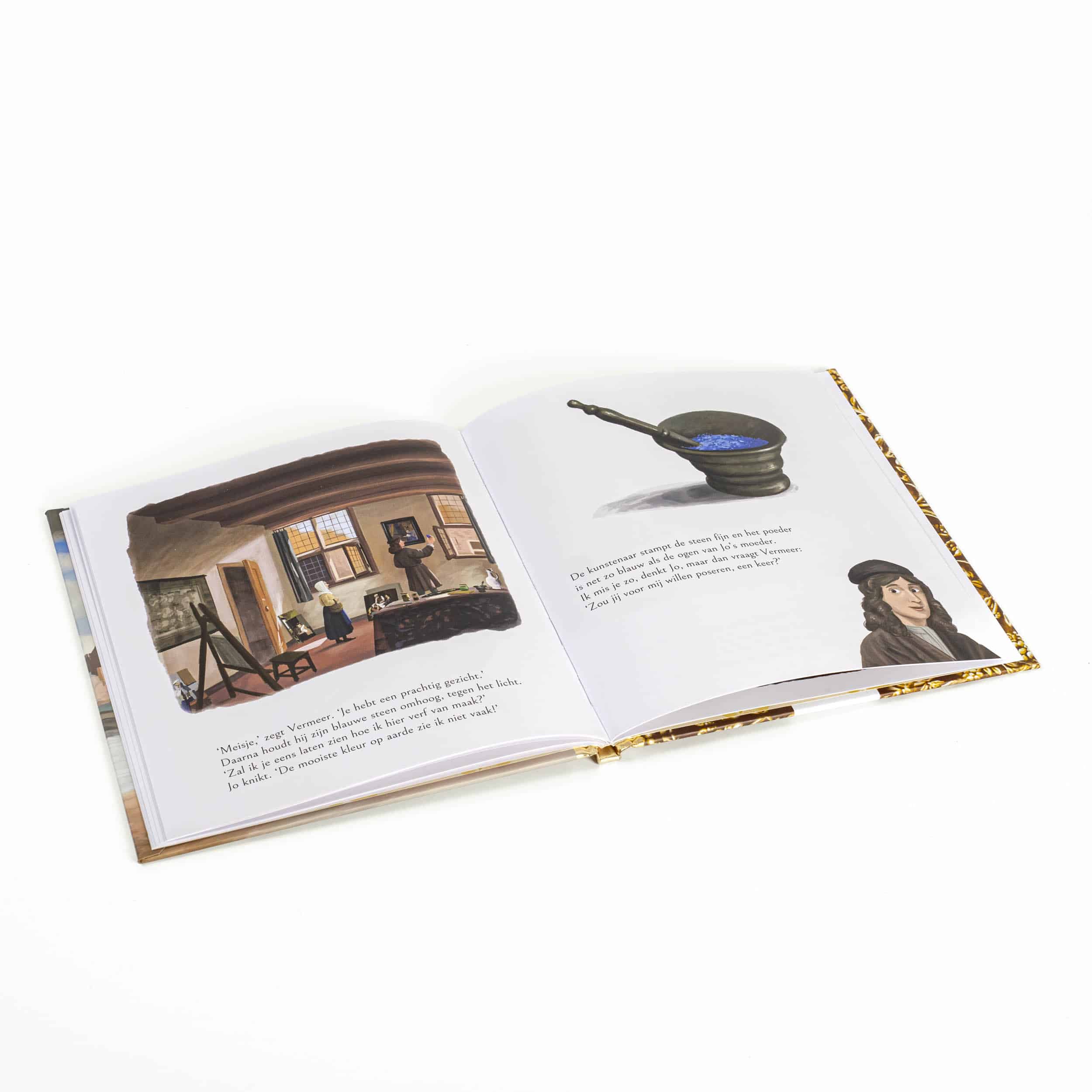 Een meisje loopt gehaast door Delft. Ze heeft verschillende pakketjes bij zich die ze moet bezorgen. Brieven, een gitaarsnaar… en een stukje blauwe steen. Lapis lazuli heet die. Hij is voor de meesterschilder Johannes Vermeer. Die maakt er blauwe verf van: ultramarijn. Die is ongelooflijk duur, duurder dan goud. Even twijfelt ze. Haar broertjes en zusjes hebben honger. Zal ze het steentje verkopen…? Maar als ze eenmaal bij meneer Vermeer heeft aangeklopt, heeft hij een bijzonder verzoek aan haar.