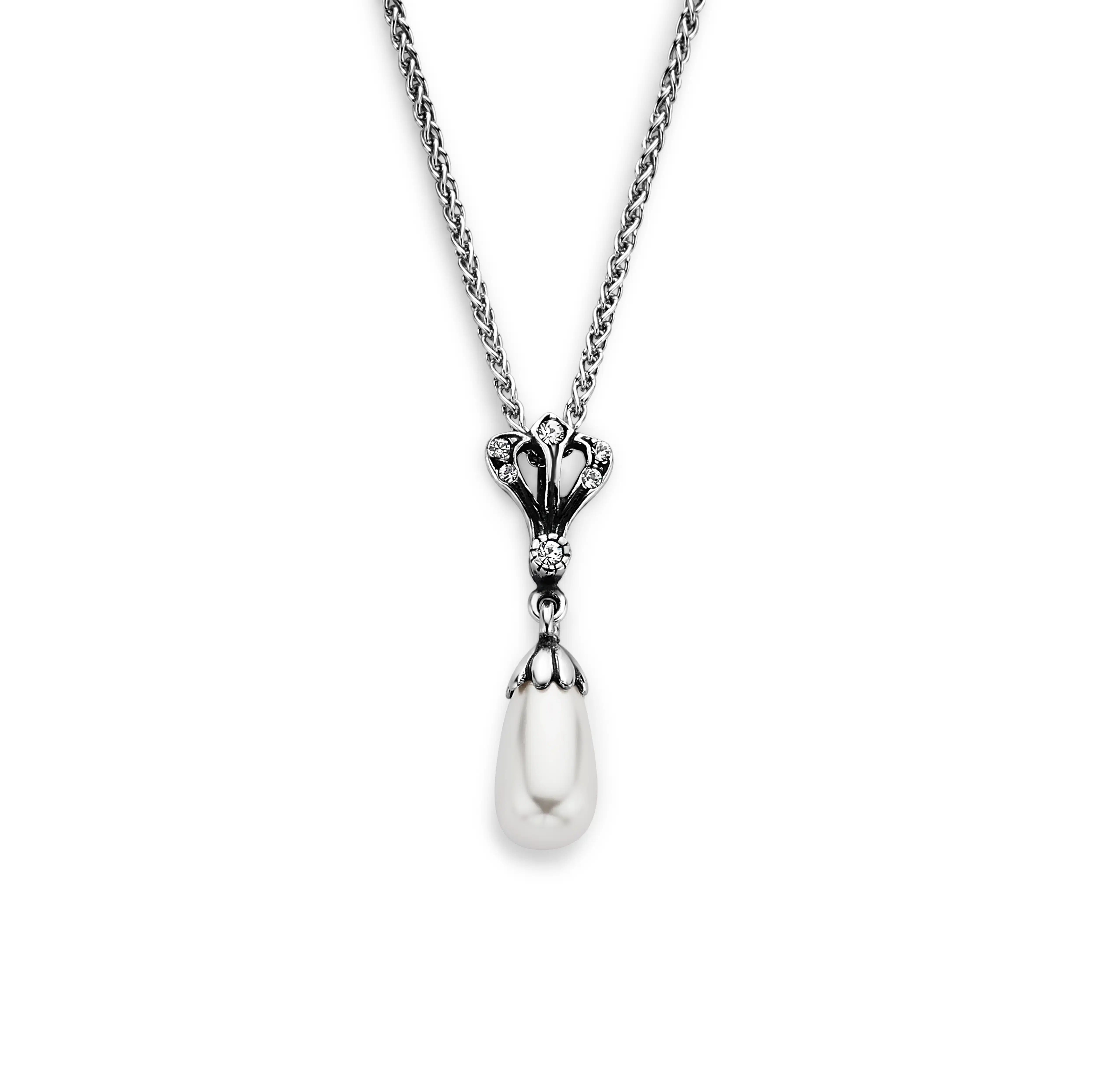 Elegante hanger van sterling zìlver met Swarovski kristallen en een glasparel
