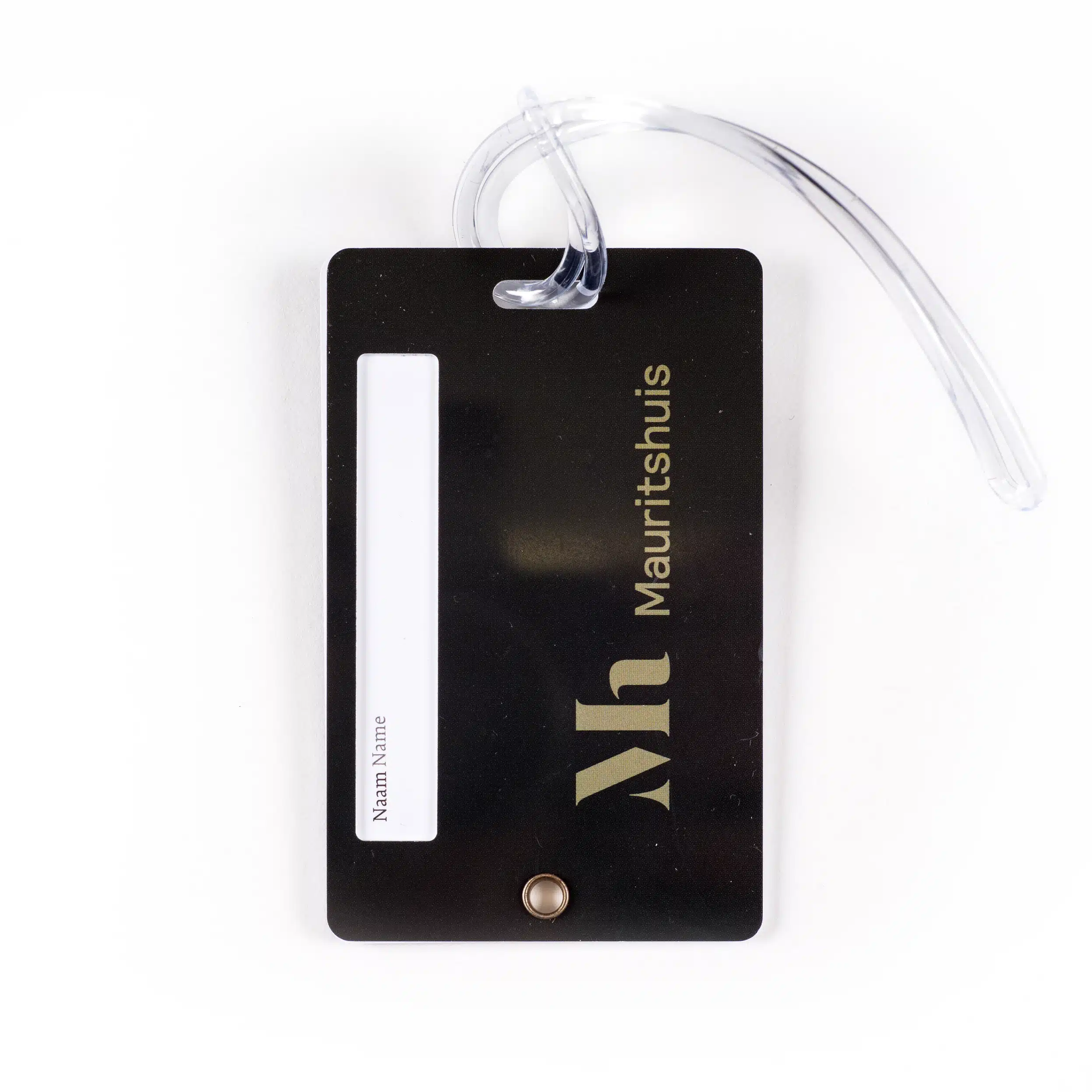 Bagagelabel met een afbeelding van het schilderij van Johannes Vermeer, Meisje met de parel. Aan de binnenzijde kunnen de adres gegevens toegevoegd worden.