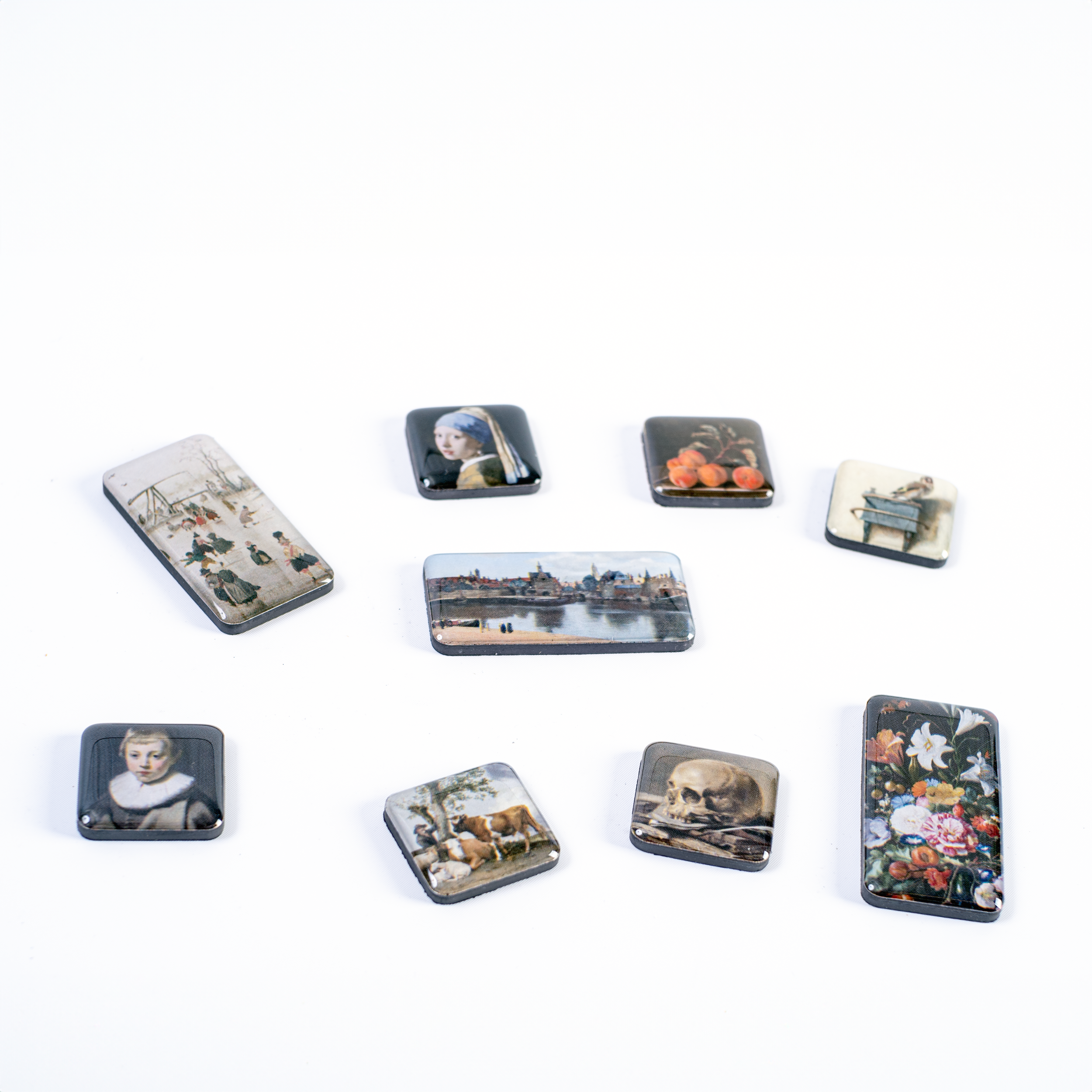 Negen kleine magneten van een selectie topstukken van het Mauritshuis.