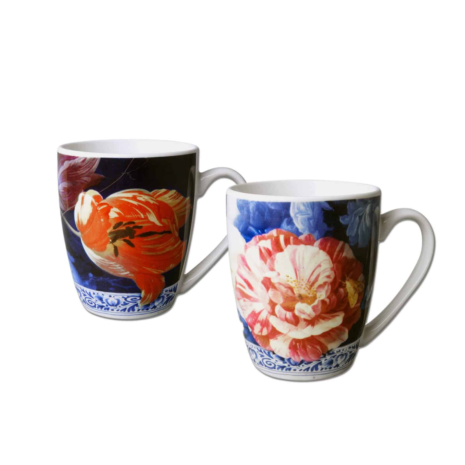 Het tijdperk van Vermeer en Rembrandt is een periode in de Nederlandse geschiedenis, waarin kunst een belangrijke rol speelde. De afbeelding op de mokjes is afkomstig van Abraham Mignon (Frankfort, gedoopt 21 juni 1640 – Utrecht, 27 maar 1679). Abraham was een Nederlandse schilder van bloem-en vruchtenstillevens.