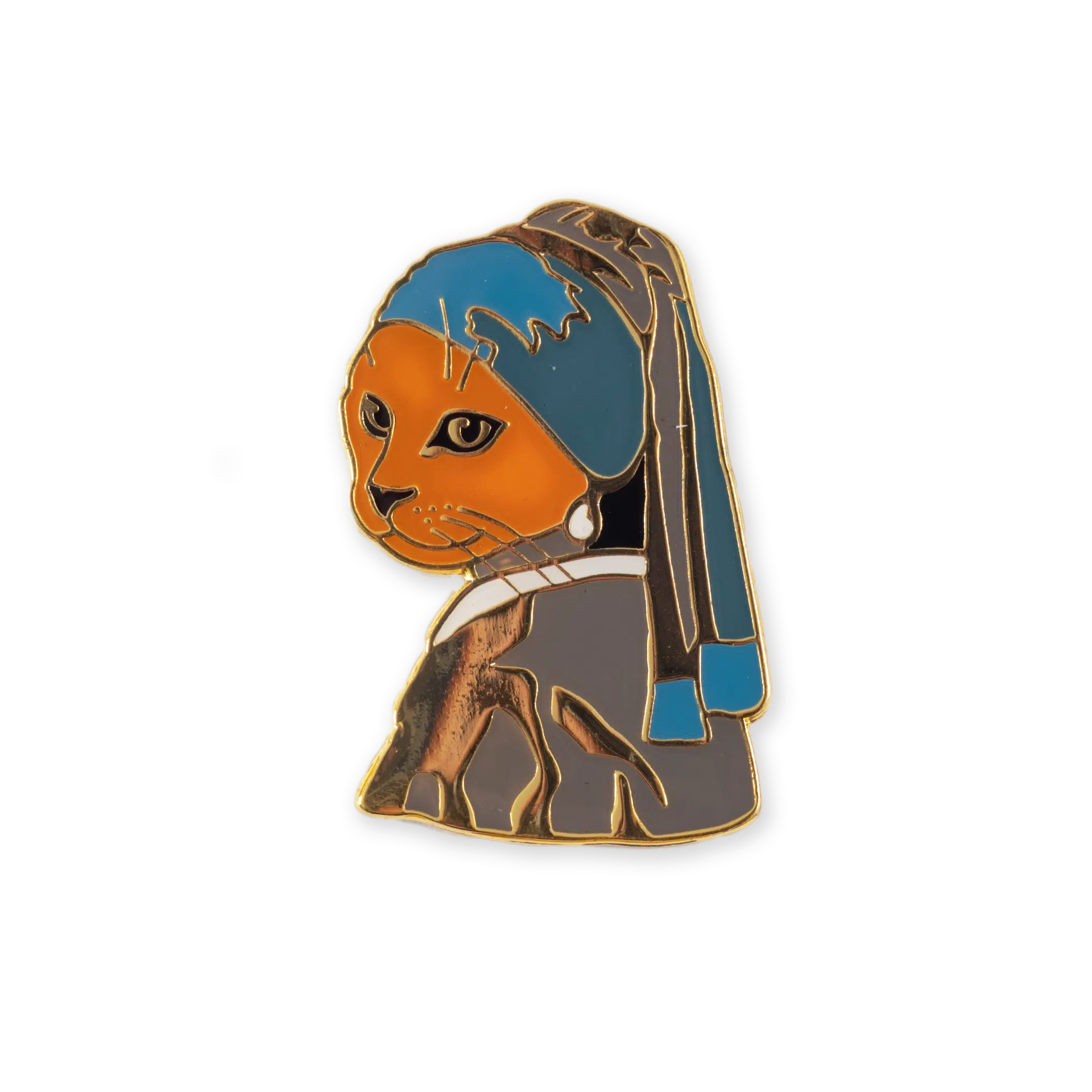 Een revers pin Geïnspireerd op het meisje met de parel van vermeer. Geeft uw outfit een “ kunstig” tintje en kan gedragen worden door dames en heren. Leuk voor de verzameling. Afmeting: ca. 3,4 x 2,2 cm