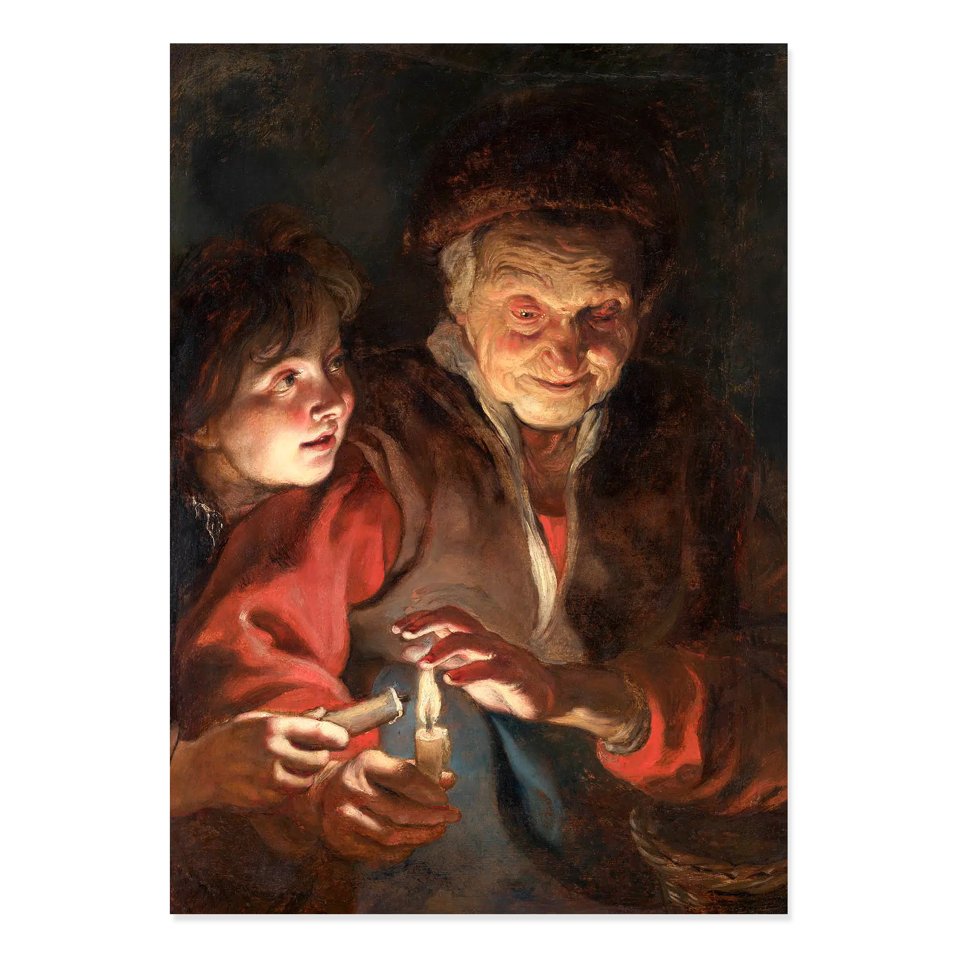 Poster groot Oude Vrouw en Jongen met Kaarsen, Rubens