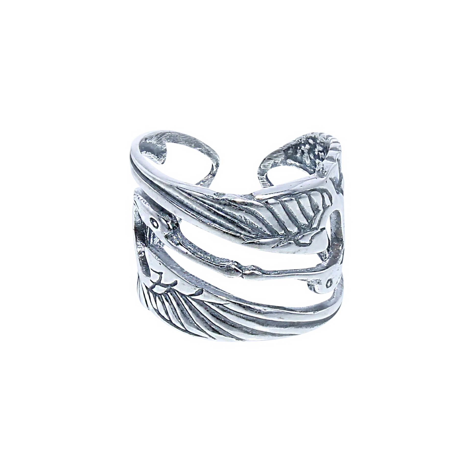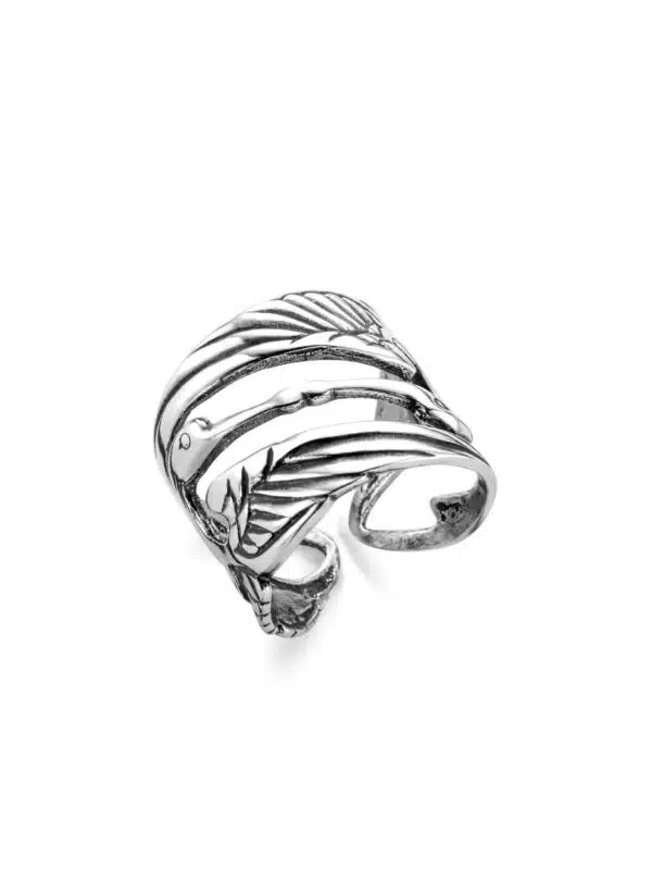 Kraanvogelring, met zorg handgemaakt van sterling zilver – geïnspireerd op een ontwerp van Alfons Mucha (1860–1939). Een verfijnd en stijlvol sieraad, vervaardigd in Nederland. Eén maat.