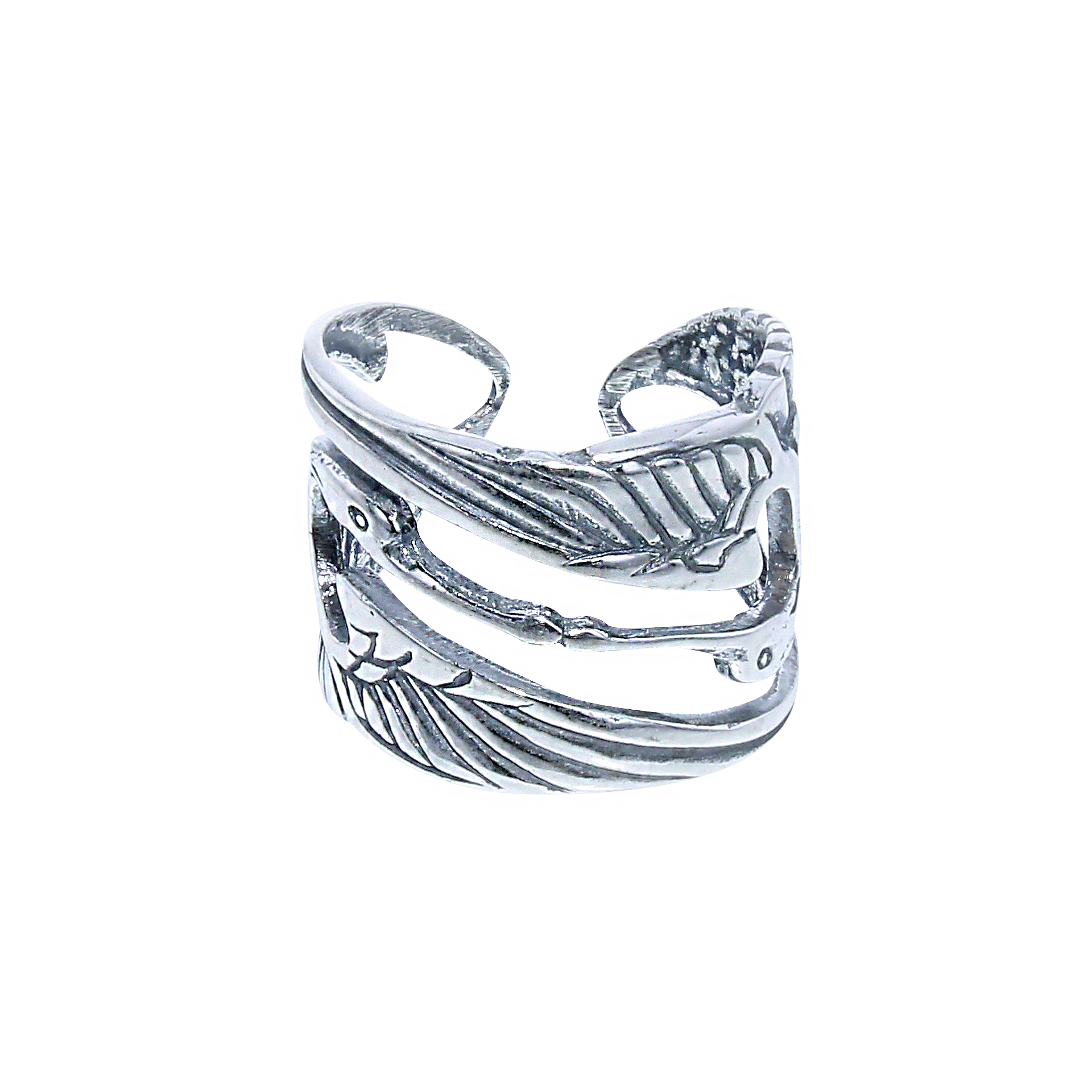 Kraanvogelring, met zorg handgemaakt van sterling zilver – geïnspireerd op een ontwerp van Alfons Mucha (1860–1939). Een verfijnd en stijlvol sieraad, vervaardigd in Nederland. Eén maat.