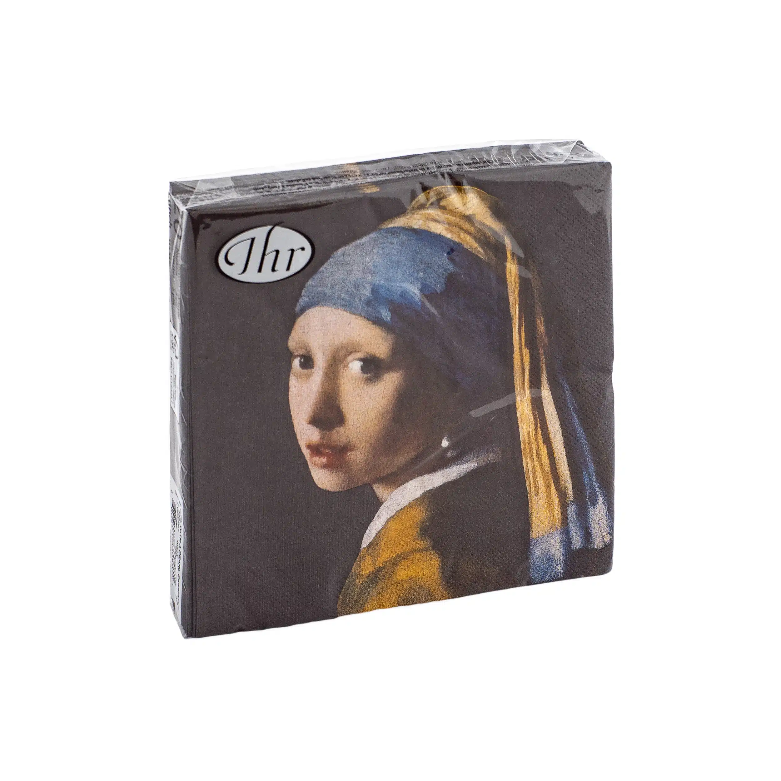Servetten met een detail van Vermeer, Meisje met de parel. Verpakking van 20 servetten, 3-laagspapier. Afmeting: ca. 16,5 x 16,5 cm Exclusief ontworpen voor het Mauritshuis.