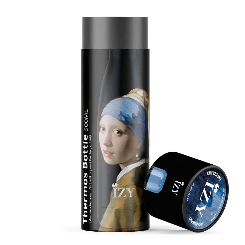 Ervaar tijdloze kunst en moderne functionaliteit met onze exclusieve thermosfles, bedrukt met Vermeer’s iconische ‘Meisje met de Parel’. Geniet van je favoriete drank in stijl, waar je ook gaat.
