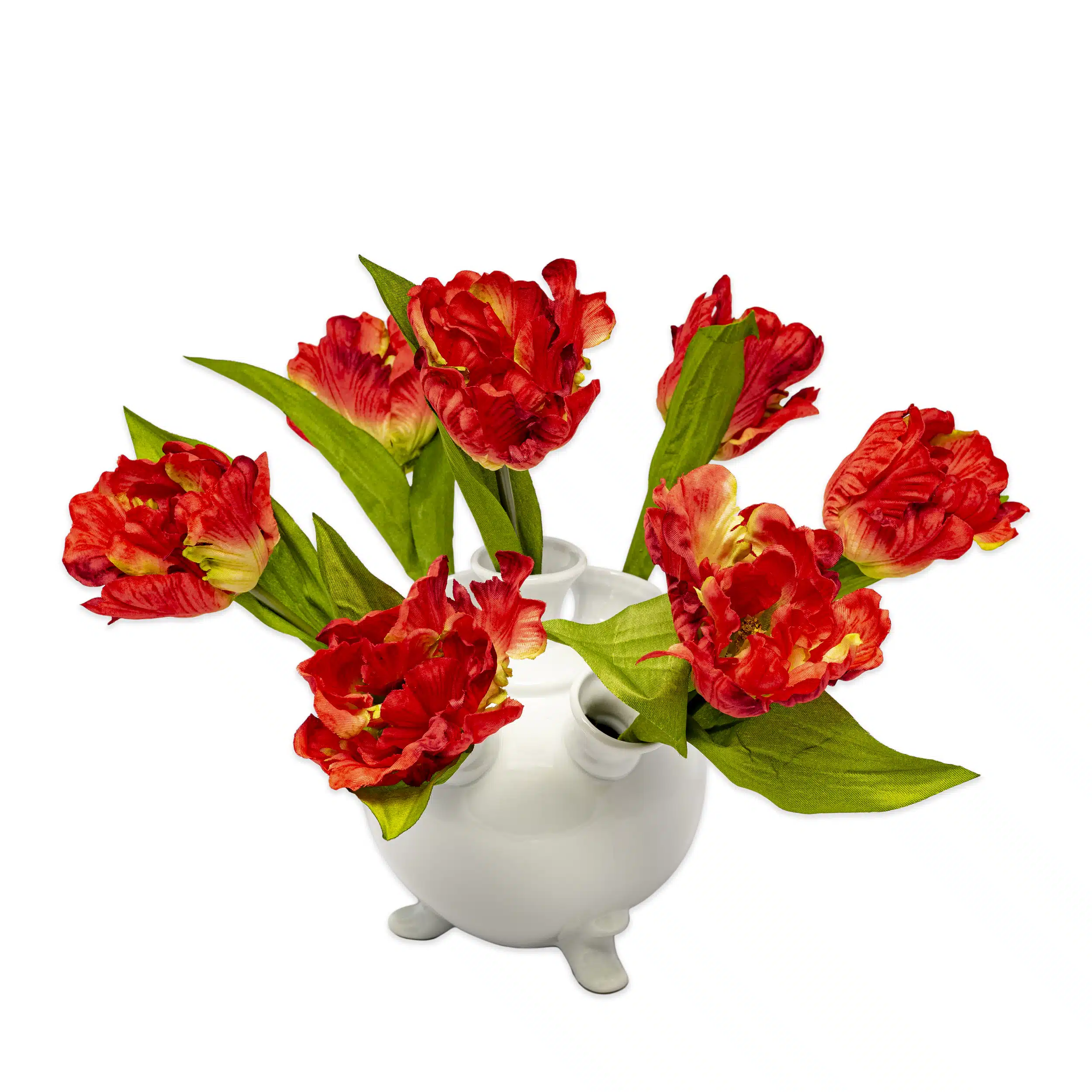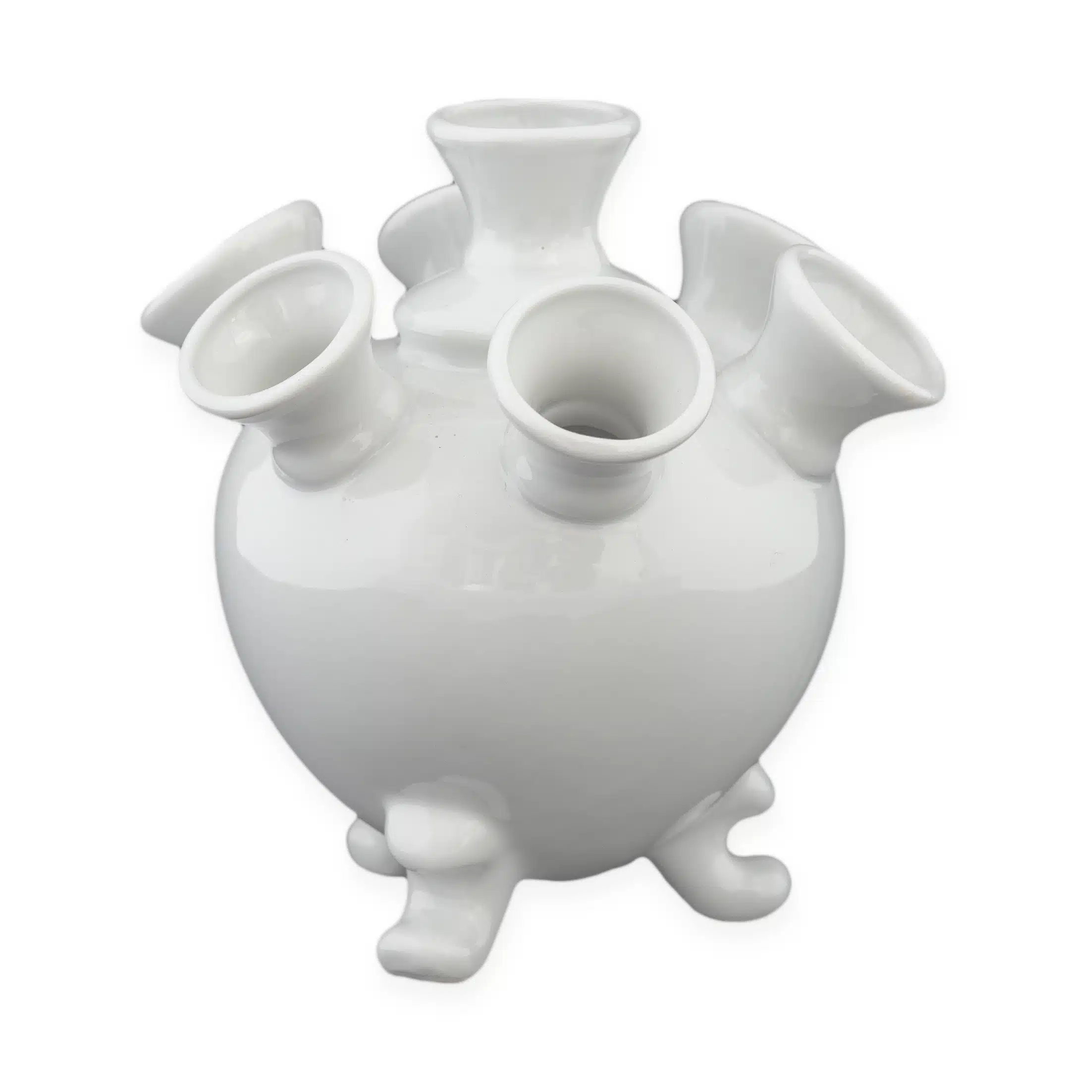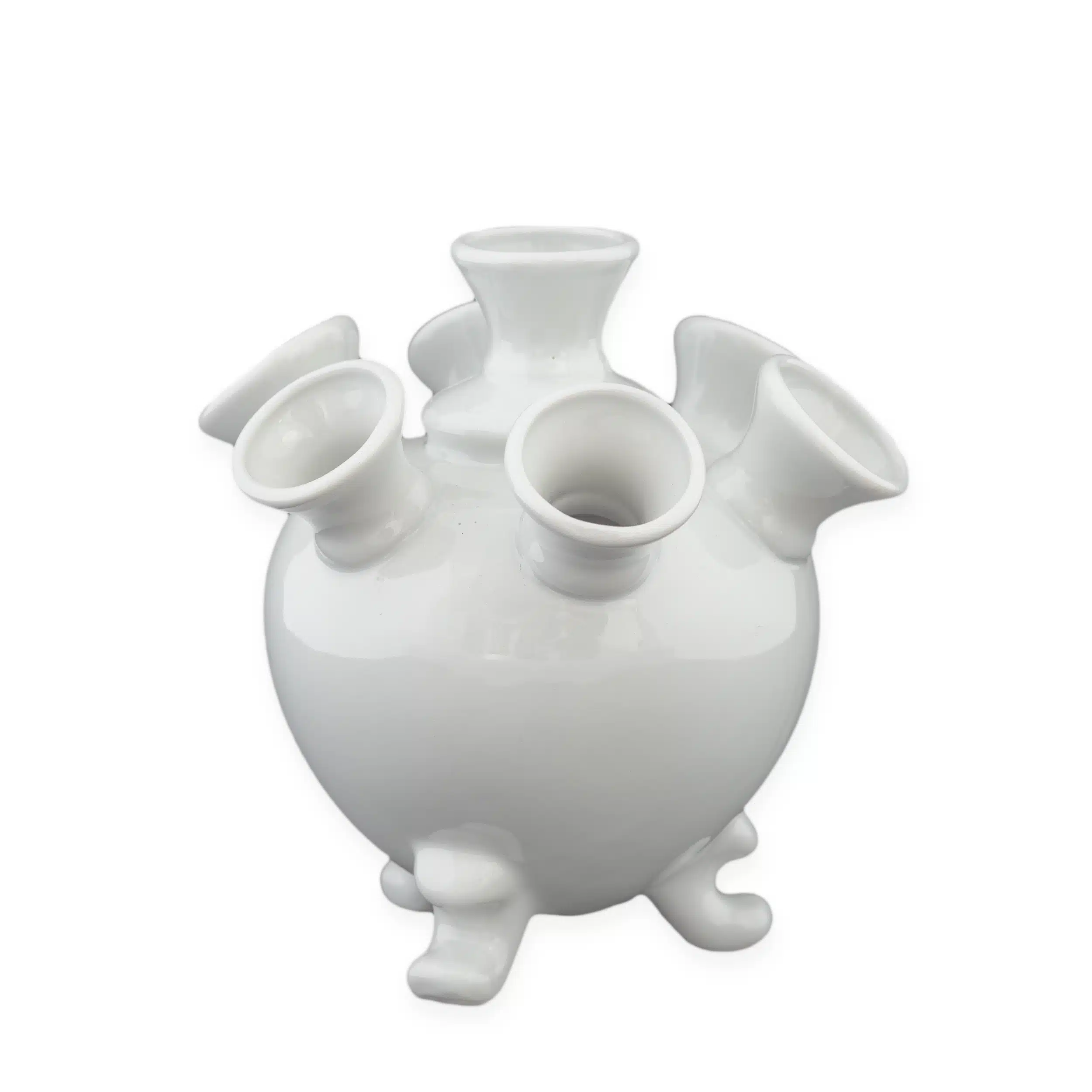 Tulpenvaasje van porselein. Er kunnen zeven tulpen in. Afmeting: ca. 15 x 15 x 15 cm